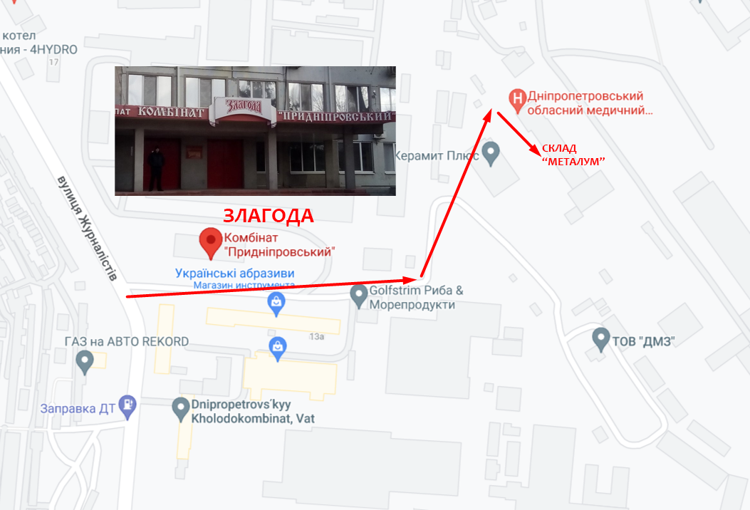 Схема проїзду до складу у м. Дніпро (біля вул. Журналістів, 15):